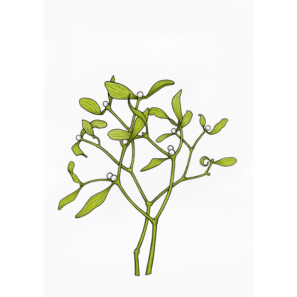 Pohlednici zdobí autorská ilustrace jmelí, která byla kreslená ručně mnou, Lucií, v mém ateliéru. 💛