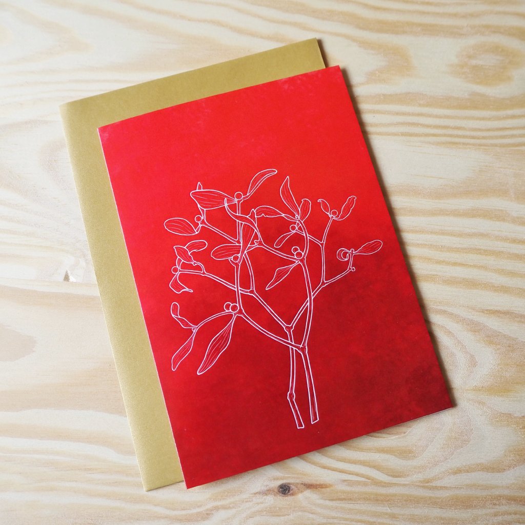 Přáníčko zdobí reprodukce autorské ilustrace jmelí. Motiv je kresbou nakreslenou digitálně s láskou Lucií v našem ateliéru podle větviček jmelí, které jsme si koupili před Vánoci pro potěšení. 💛