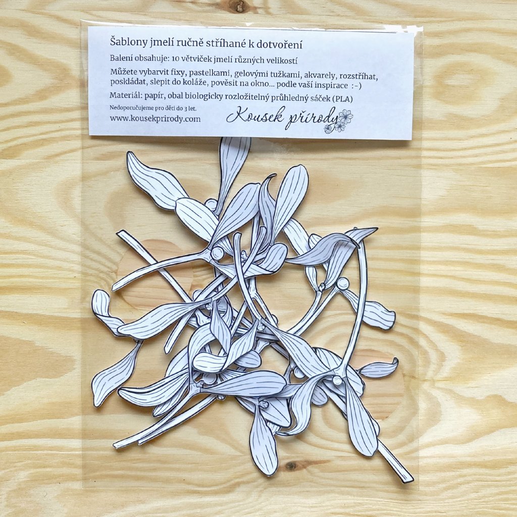 Máte velkou chuť si kreslit, vybarvovat a kreativně hrát, ale jste přesvědčení, že kreslit neumíte a určitě se vám to nepovede? S našimi šablonami ke krásnému výsledku nepotřebujete mít žádné náročné dovednosti. Může s nimi tvořit každý. Pomalovat je bláznivými barvami anebo je nechat bílé a nalepit je na barevné pozadí, rozstříhat je, poskládat z nich koláž, vyrobit si vlastní přáníčko, svázat je stuhou do svazku a pověsit na zeď nebo na lustr, nebo papírové větvičky použít jako šablonu k obkreslení tvaru a zbytek jmelí si dokreslit sami. Jsou učené pro vás ke hraní a těší se, jaká kreativní díla s nimi vytvoříte.