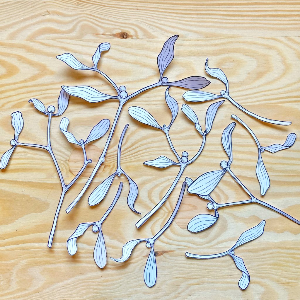 Šablony větviček jmelí ručně nastříhané pro vaše tvoření.